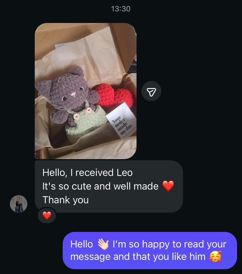 LEO - Peluche 20cm Chaton Mignon Crochet Salopette Vert